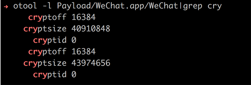 otool -l Payload/WeChat.app/WeChatgrep cry