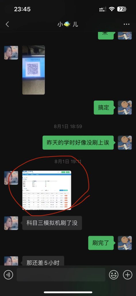 记得之前我说过科二和科三要扫码刷普通学时吧,是一个顶着美女头像其实后面是个抠脚大汉的微信账号给我们发签到和签退的二维码的,下文以小刷称呼。